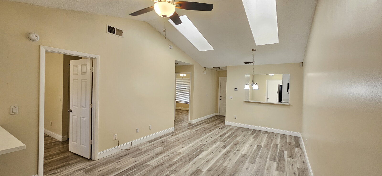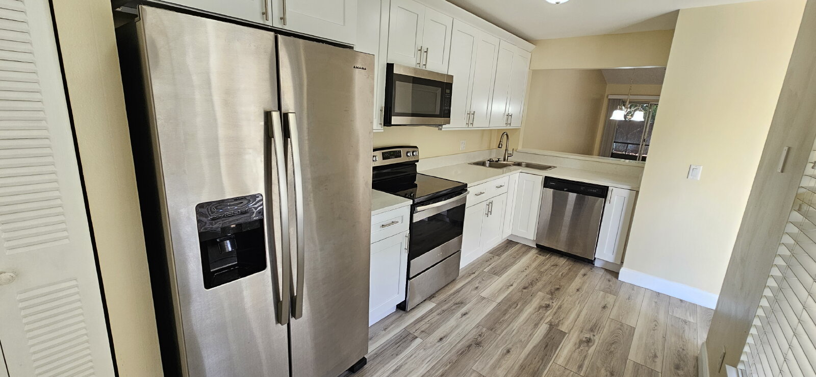 The kitchen—truly the heart of the home—offers modern white cabinetry and stainless steel appliances, making it both stylish and functional. The living and dining areas provide a comfortable, open space perfect for relaxing or spending time with others.
