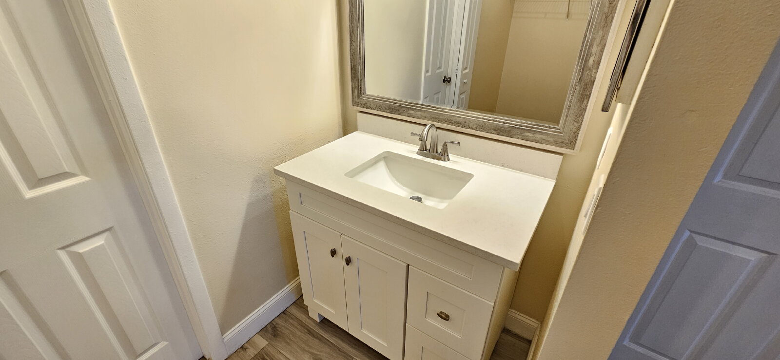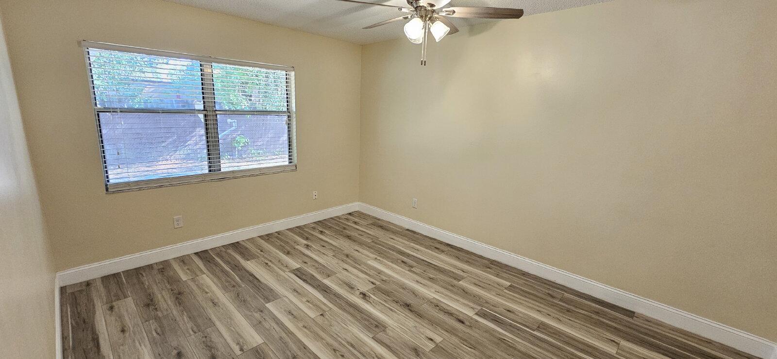 Each bedroom is equipped with ceiling fans and window blinds for added comfort. The primary bedroom includes its own private sink, adding convenience to your daily routine. The bathroom has also been tastefully updated.